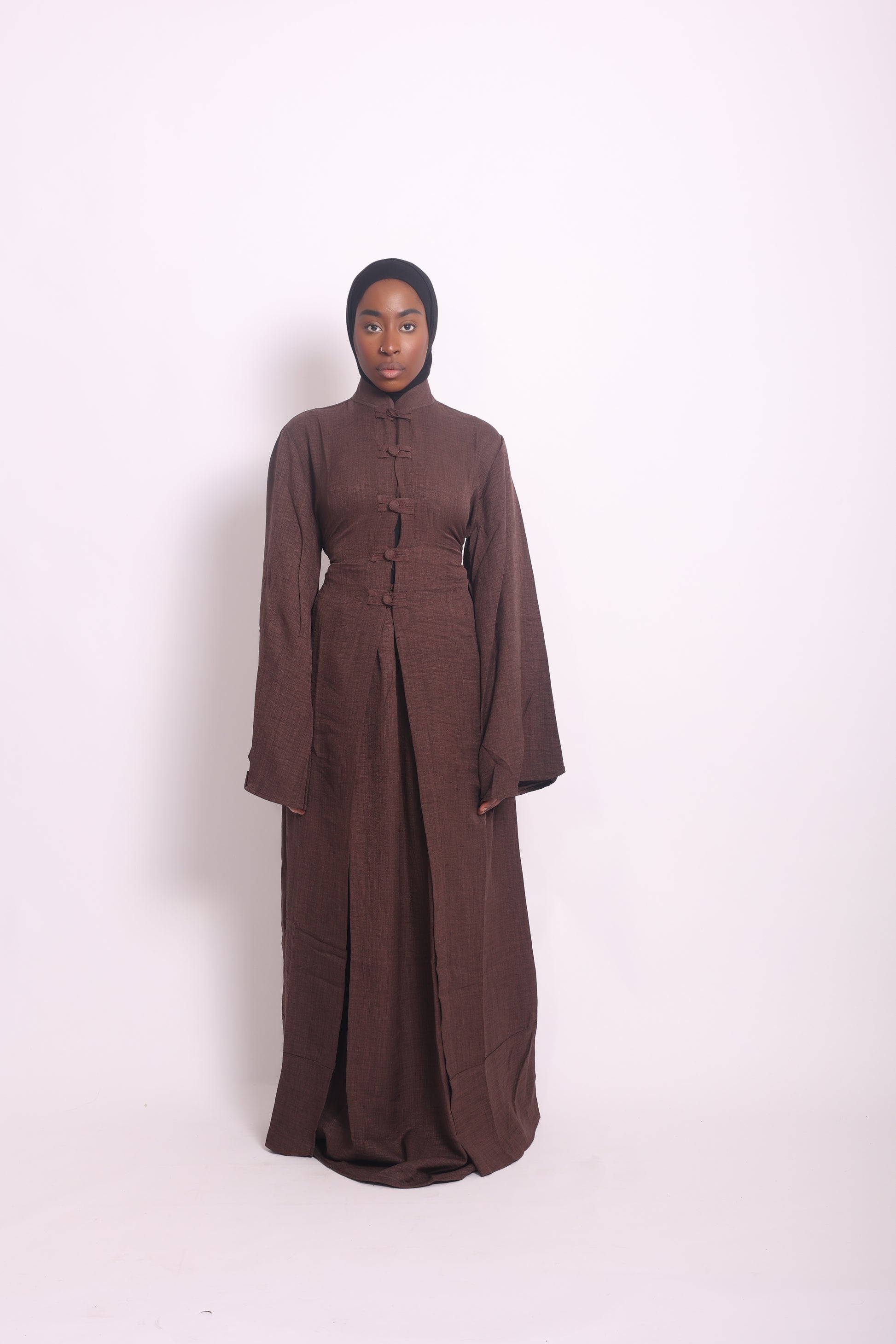 Composé d’un kimono ample et ceinturé à la taille, accompagné d’une jupe fluide, d’une sous-robe ou même d’un pantalon, cet ensemble s’adapte à vos envies et à toutes les silhouettes.